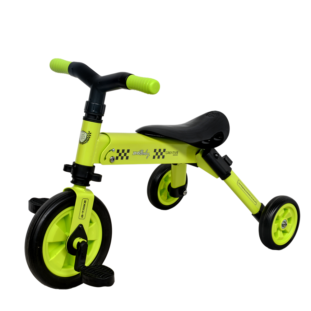 Tricicleta 2 in 1 B-trike O tricicleta simpatica care se poate folosi cu sau fara pedale! Cu roti micute pentru a fi cat mai compacta, dar si pentru a fi mai rapida, tricicleta 2 in 1 antreneaza copilul pentru a fi pregatit sa foloseasca bicicletele fara pedale, sau chiar bicicletele clasice. - recomandata copiilor cu varsta cuprinsa intre 1 si 4 ani - dezvolta increderea si echilibrul micutilor - incurajeaza miscarea prin inlesnirea coordonarii mainilor si picioarelor - fabricata dintr-un metal extra-usor - usor de transportat si depozitat datorita plierii compacte Manualul de instructiuni si utilizare se poate descarca aici